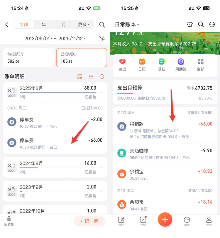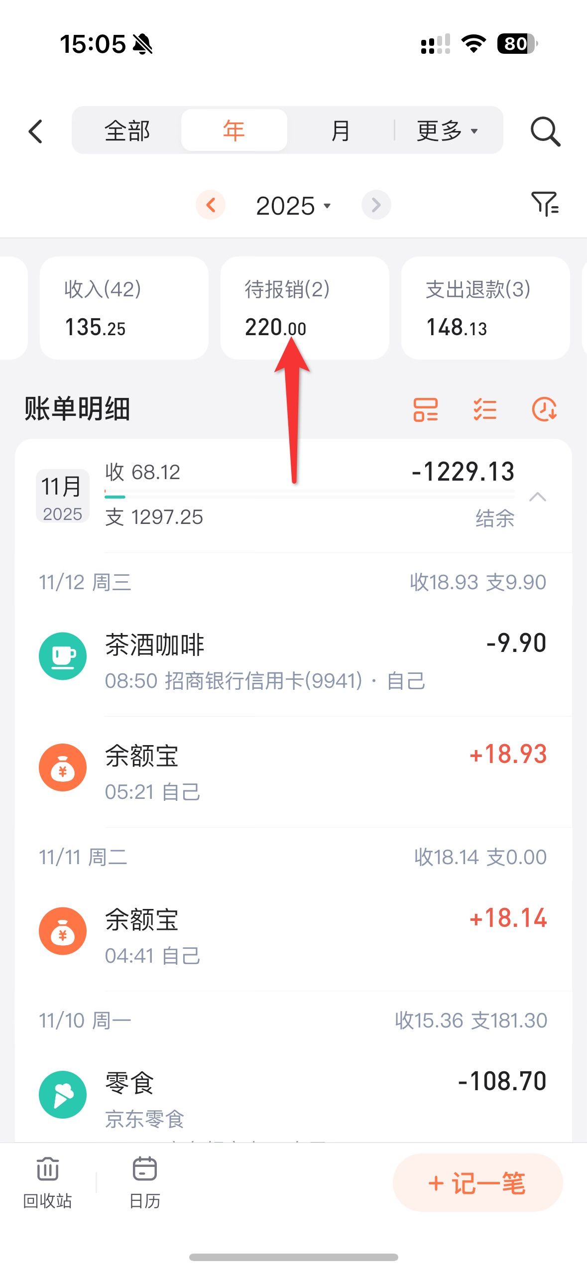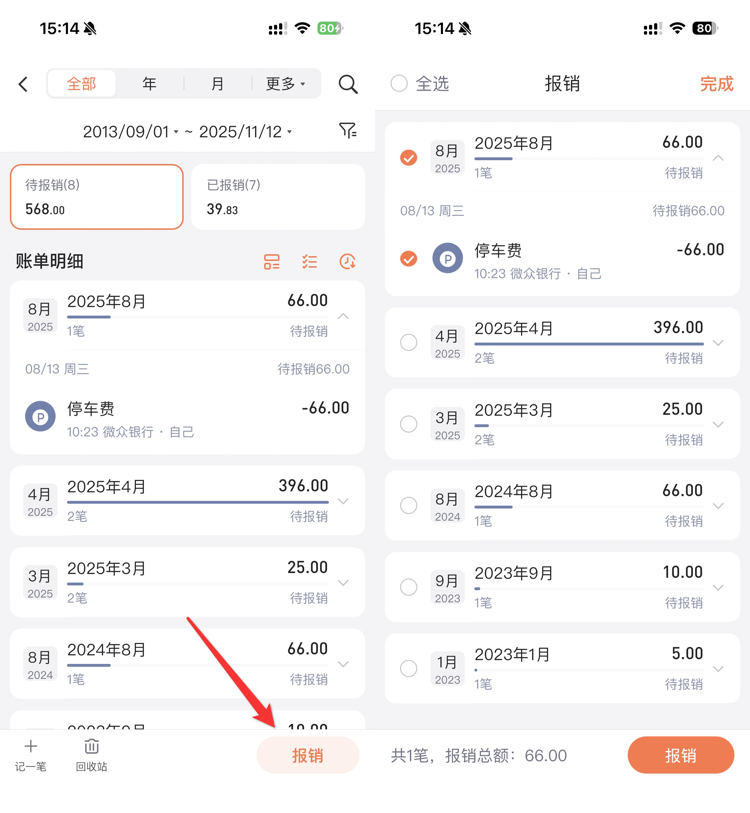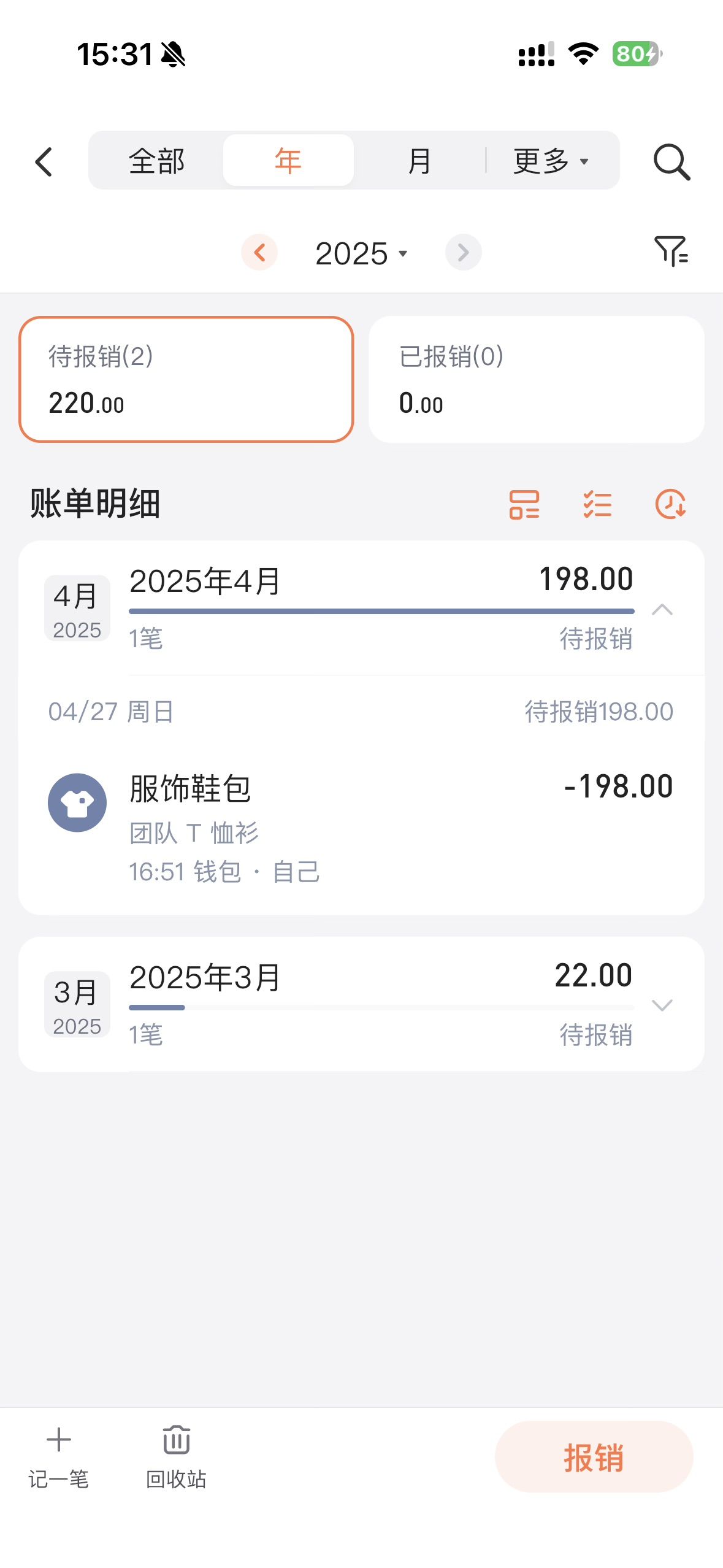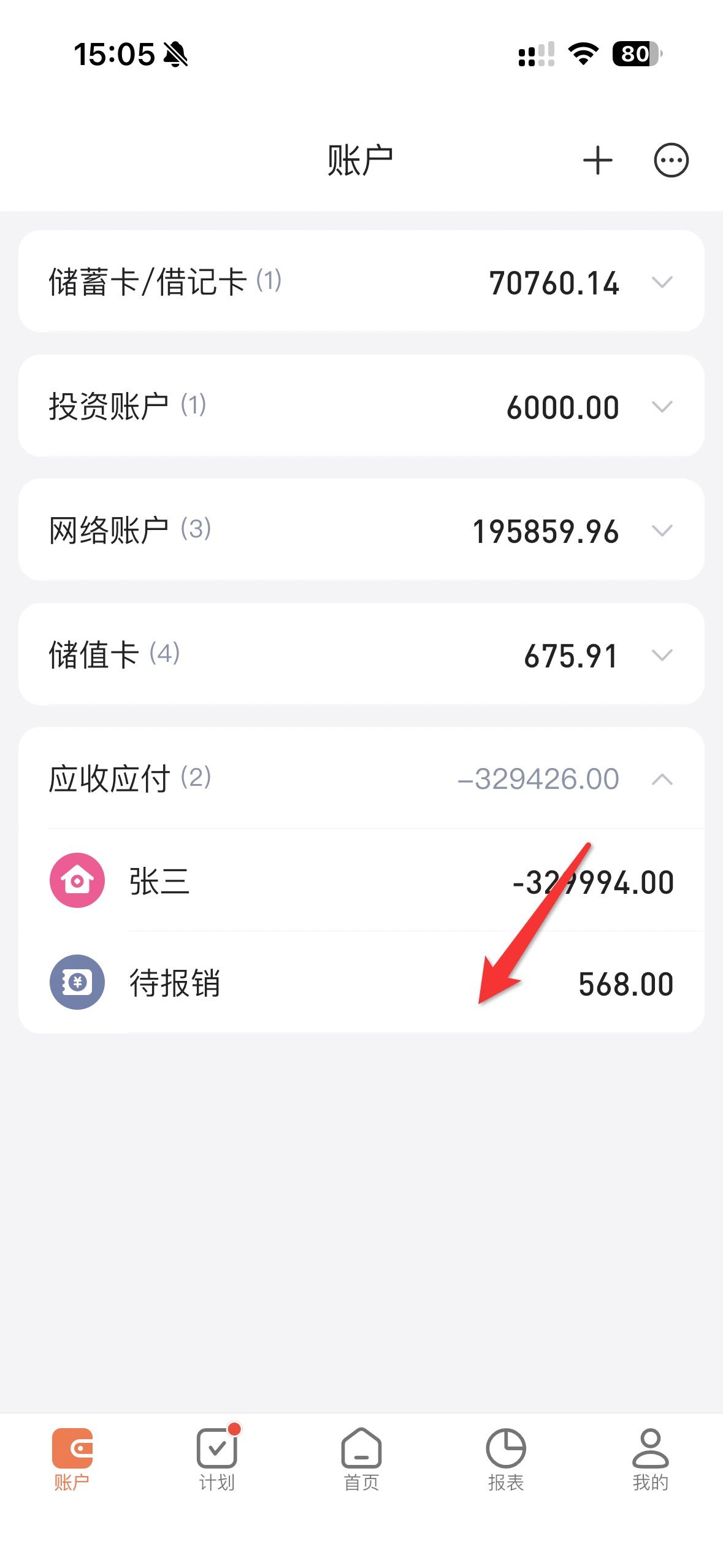 - 方式一:账户页点击【待报销】入口,即可进入所有账本的报销账管理页